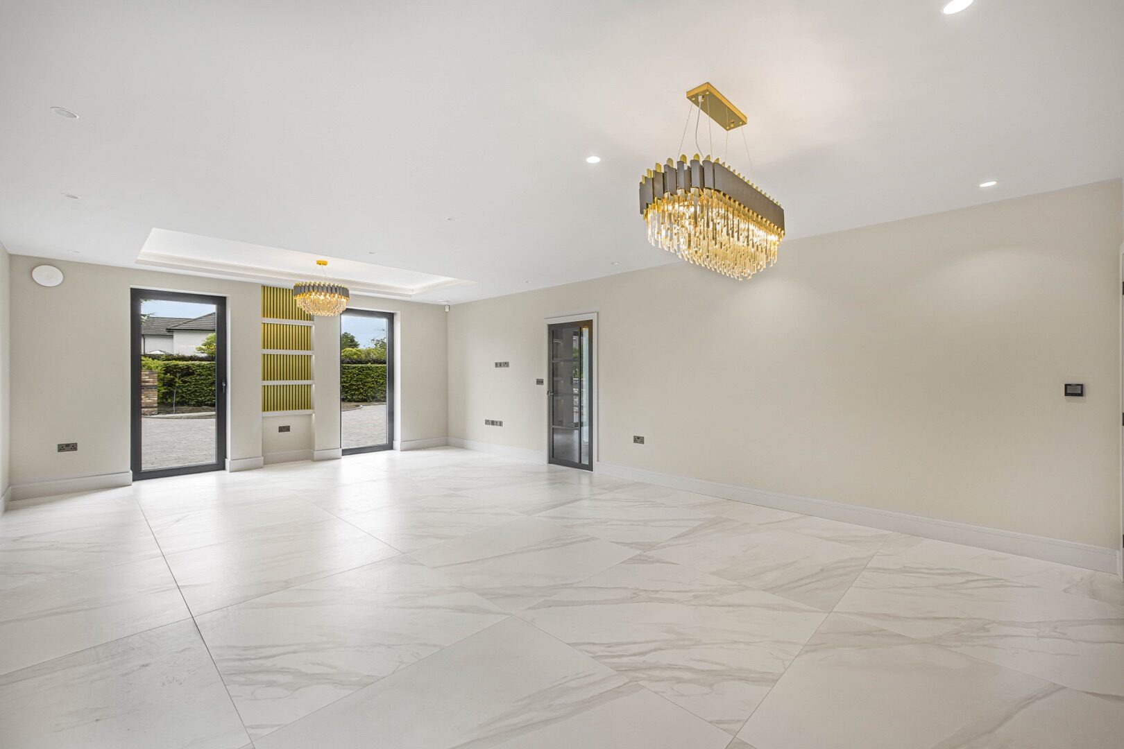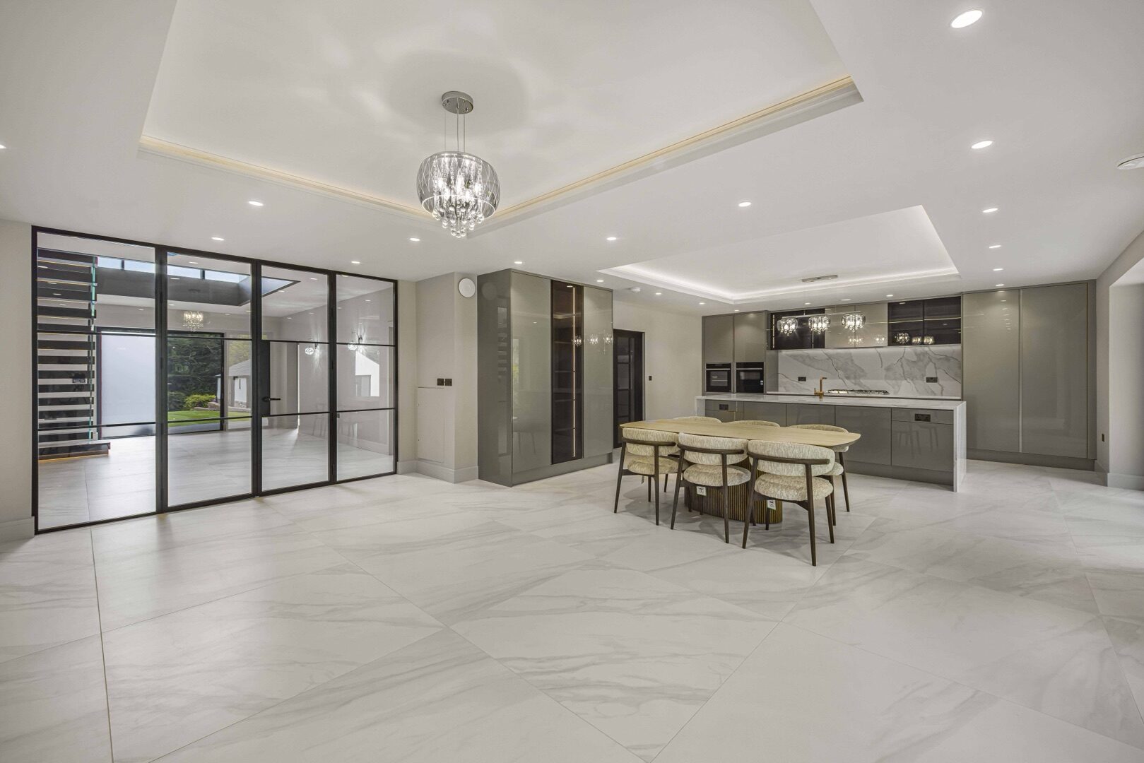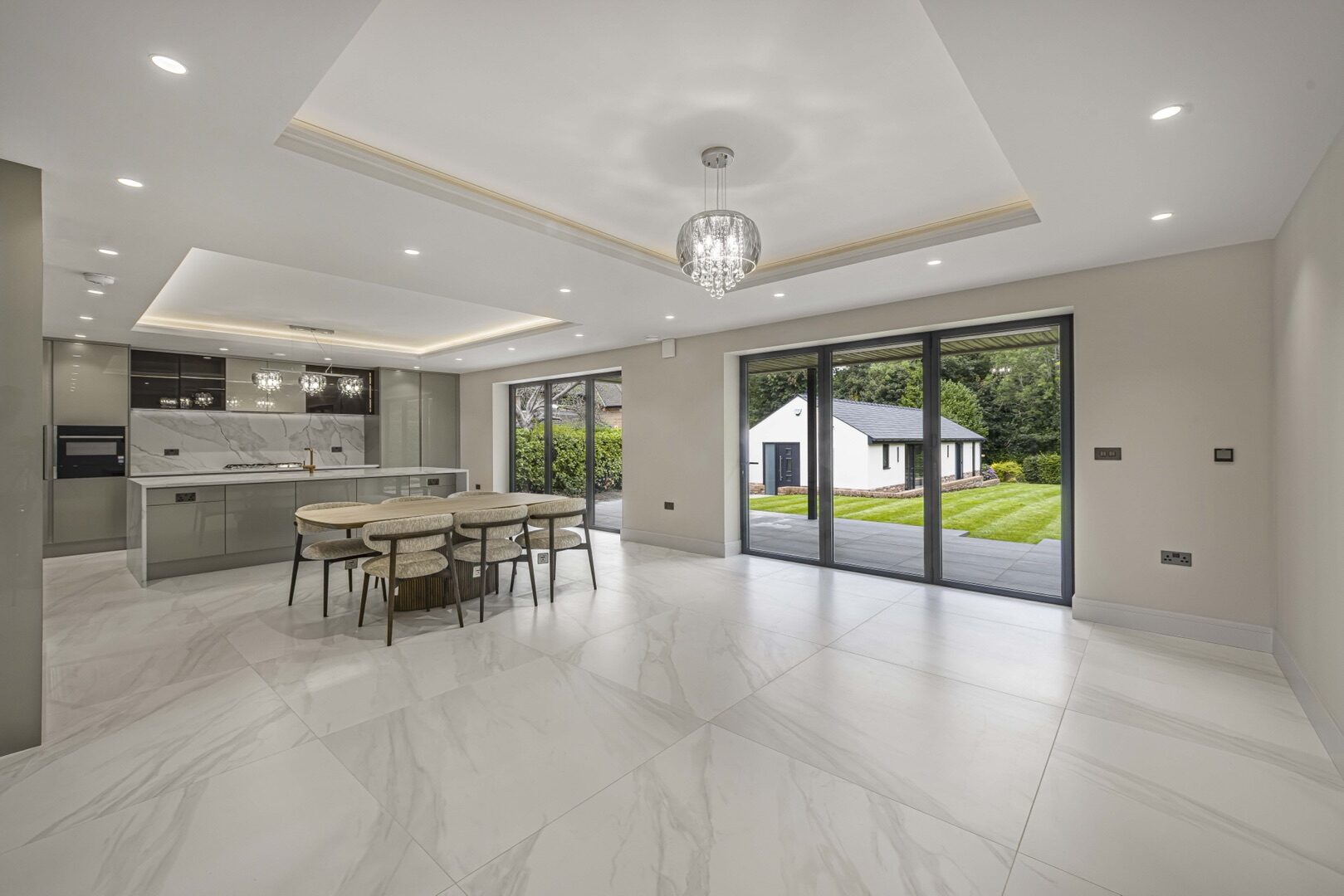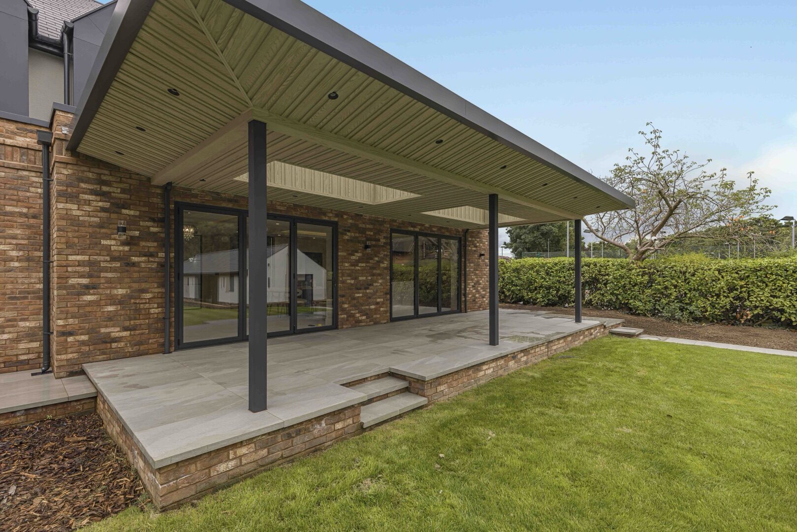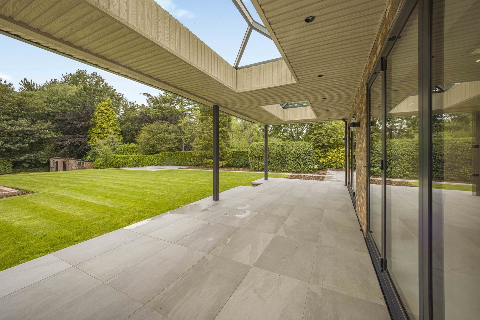 Generous glazed openings and abundant natural light enhance the sense of space, creating a seamless connection between the indoor and outdoor areas.